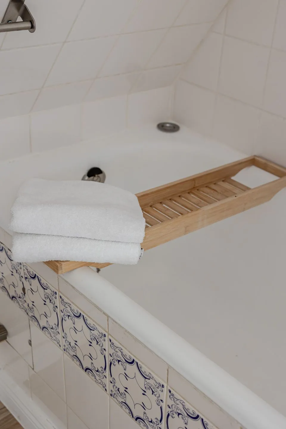 Das Badezimmer bietet Dusche und Badewanne, dazu die gewohnten Annehmlichkeiten wie Föhn, Kosmetikspiegel und ausreichend Ablageflächen. WLAN ist selbstverständlich vorhanden, ebenso ein TV, und auch an praktische Details wie Bügeleisen, Wäscheständer oder Staubsauger wurde gedacht.