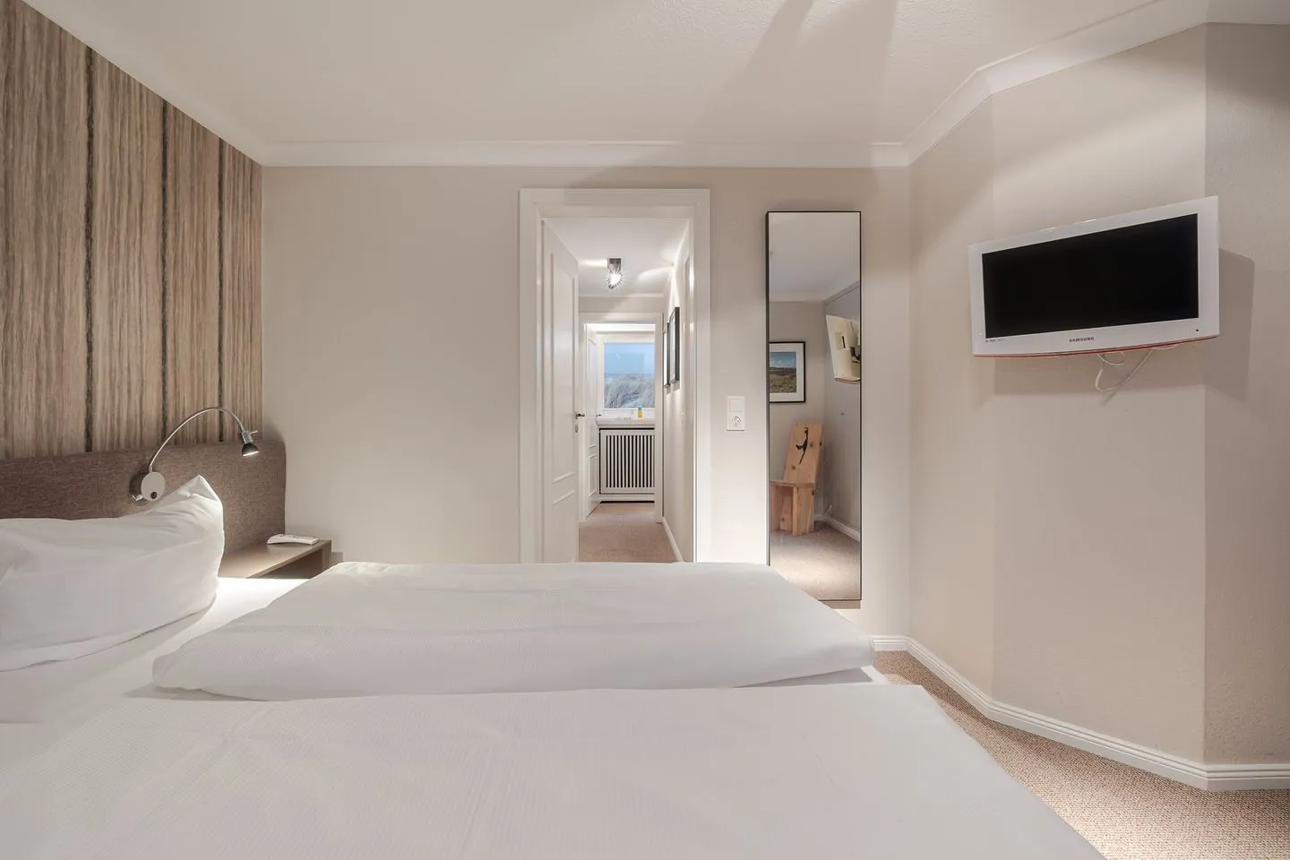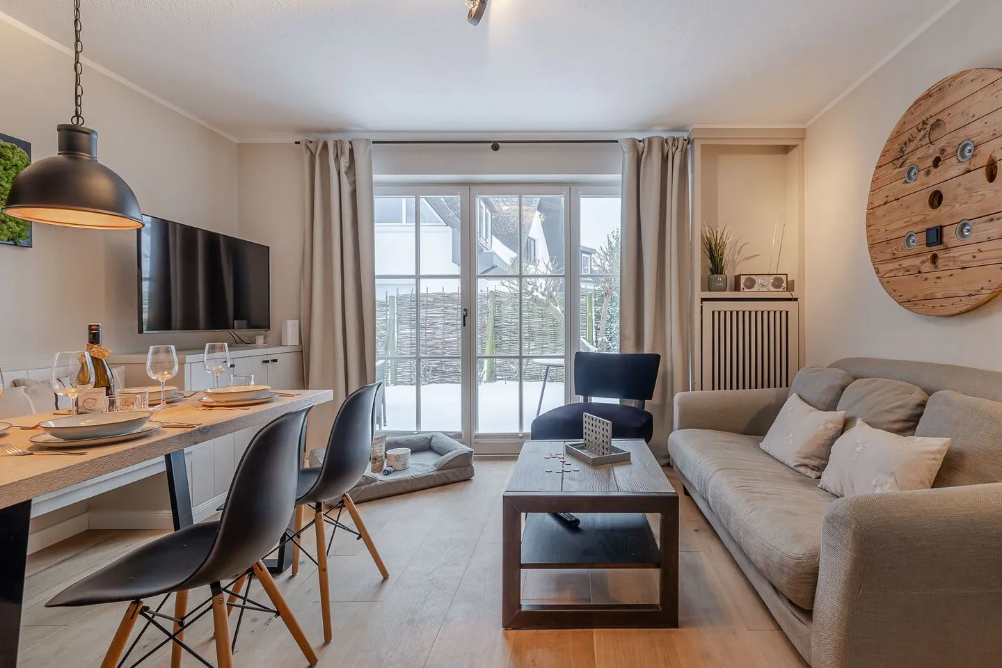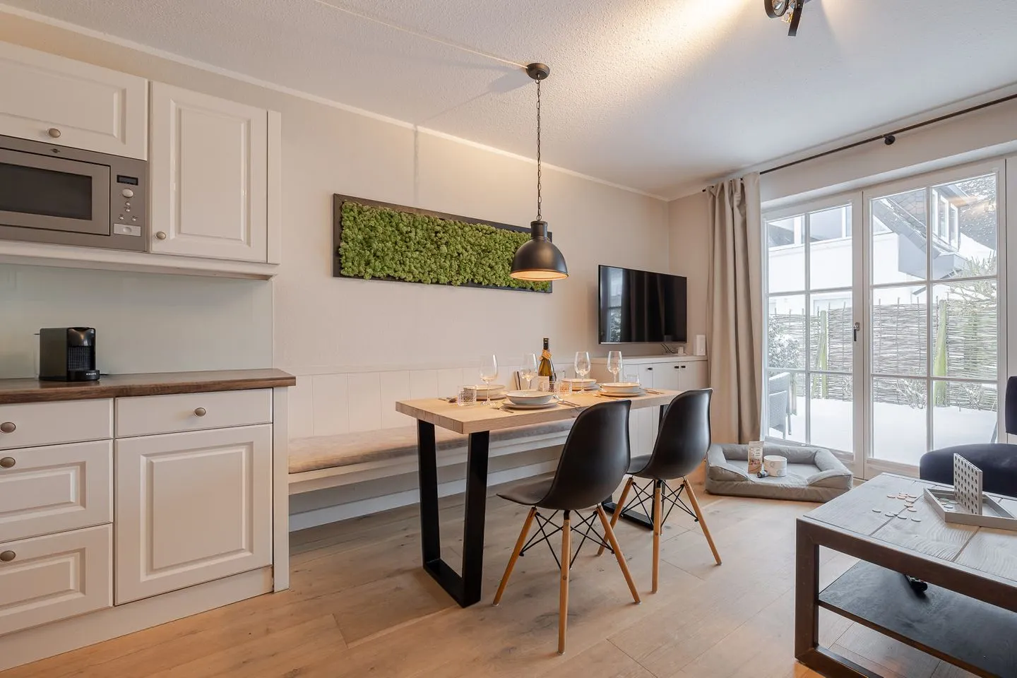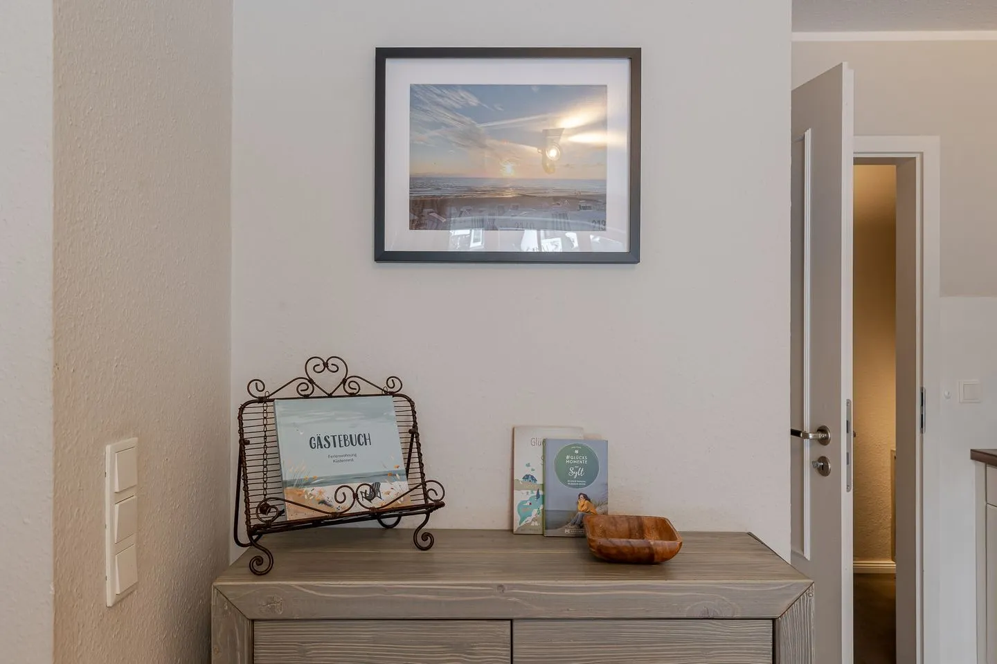Das Küstennest empfängt einen mit genau diesem Gefühl, das man auf Sylt sucht: Ruhe, Licht und eine besondere Atmosphäre, die sofort trägt. Die Wohnung ist hochwertig gestaltet, klar im Ausdruck und gleichzeitig warm – ein Ort, der wirkt, ohne sich aufzudrängen. Der Weststrand, Cafés und kleine Läden liegen nur wenige Schritte entfernt, und doch bleibt dieses angenehme Gefühl von Rückzug und Eigenständigkeit.