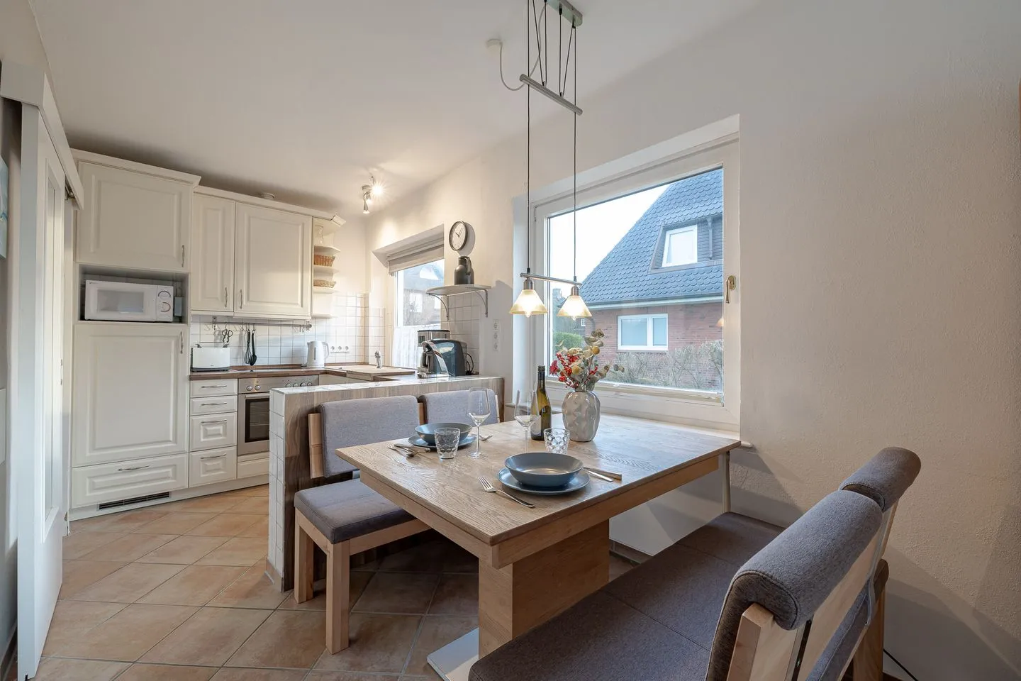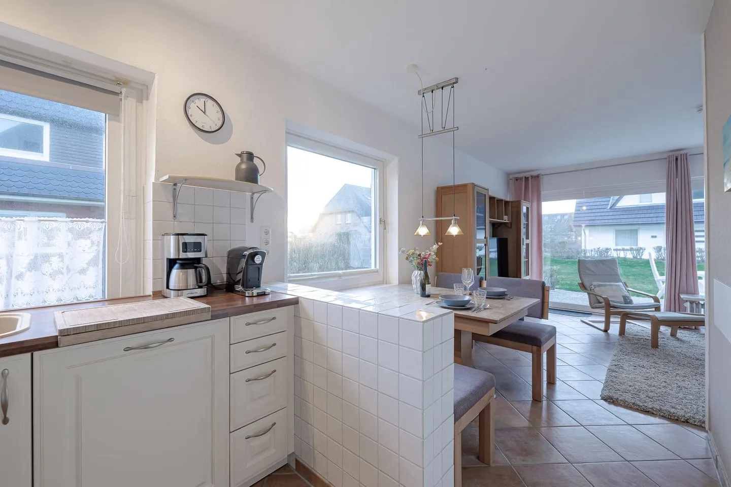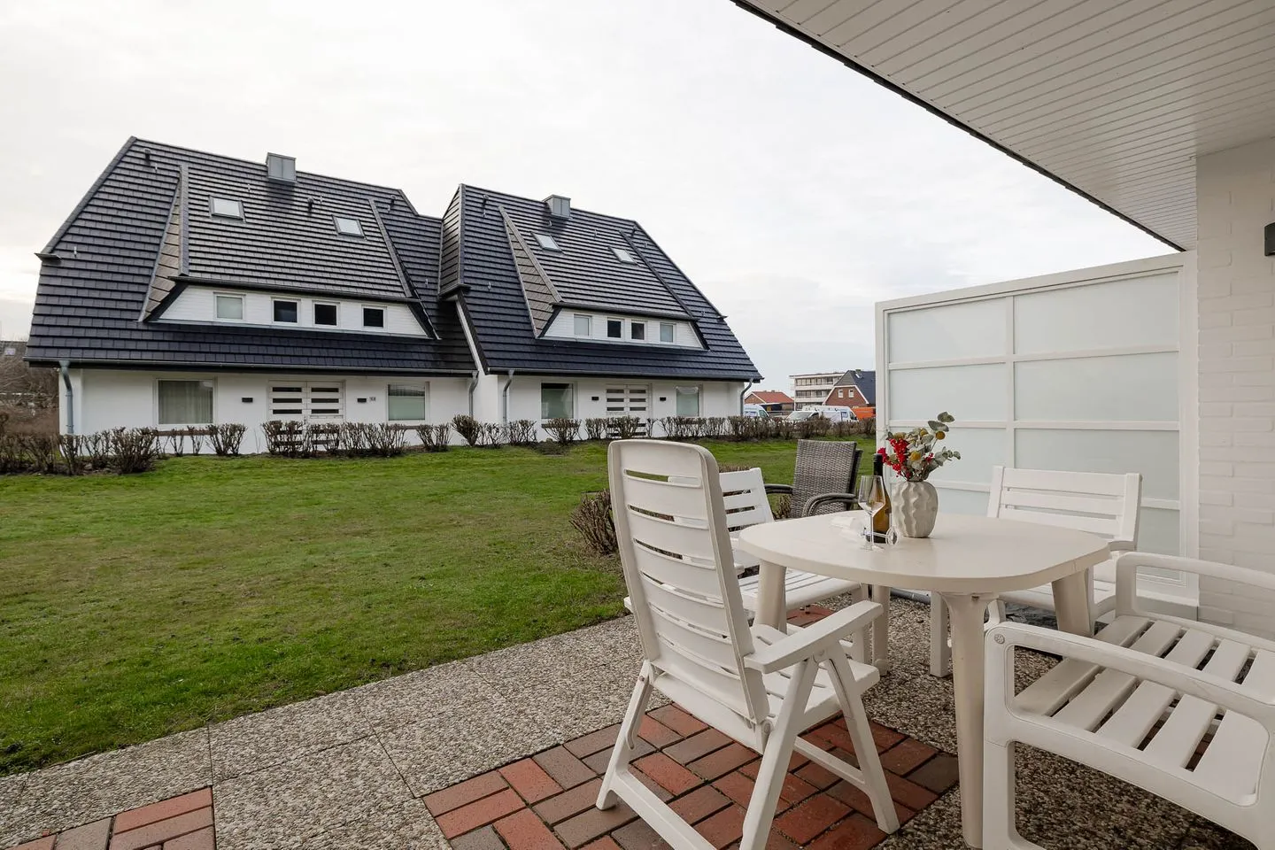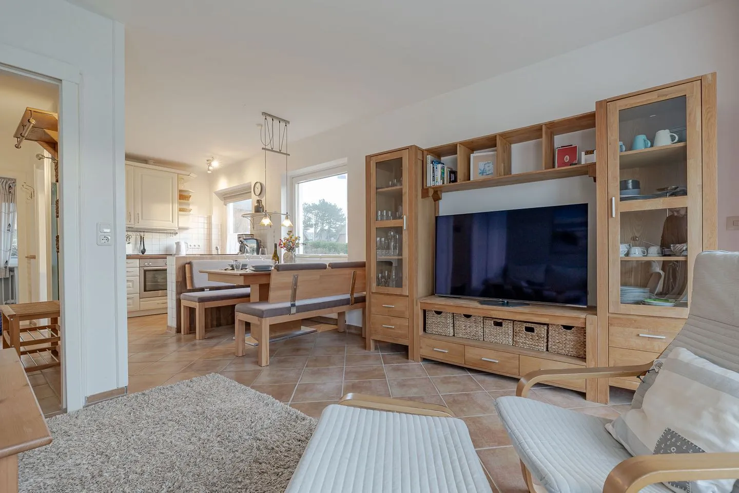 Ein besonderes Plus ist die große Terrasse mit angrenzendem Grundstücksbereich. Hier lässt sich Zeit draußen verbringen – beim Frühstück in der Sonne, mit einem Buch am Nachmittag oder abends, wenn das Meeresrauschen den Tag begleitet. Viel Platz, viel Luft und genau die Ruhe, die man im Urlaub sucht.