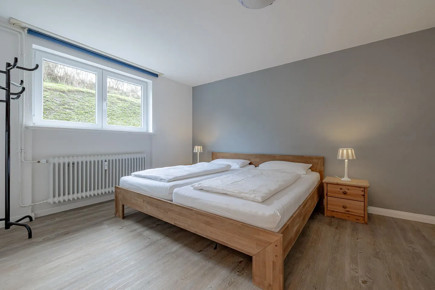 Auf rund 60 m² bietet die Wohnung Platz für bis zu vier Personen und überzeugt durch eine großzügige, gut durchdachte Aufteilung über zwei Ebenen. Im Erdgeschoss befinden sich der helle Wohn- und Essbereich sowie ein separates Schlafzimmer mit Etagenbett. Das große Schlafzimmer mit Doppelbett liegt gemeinsam mit dem neu renovierten Badezimmer im Untergeschoss – angenehm ruhig und ideal für erholsame Nächte.
