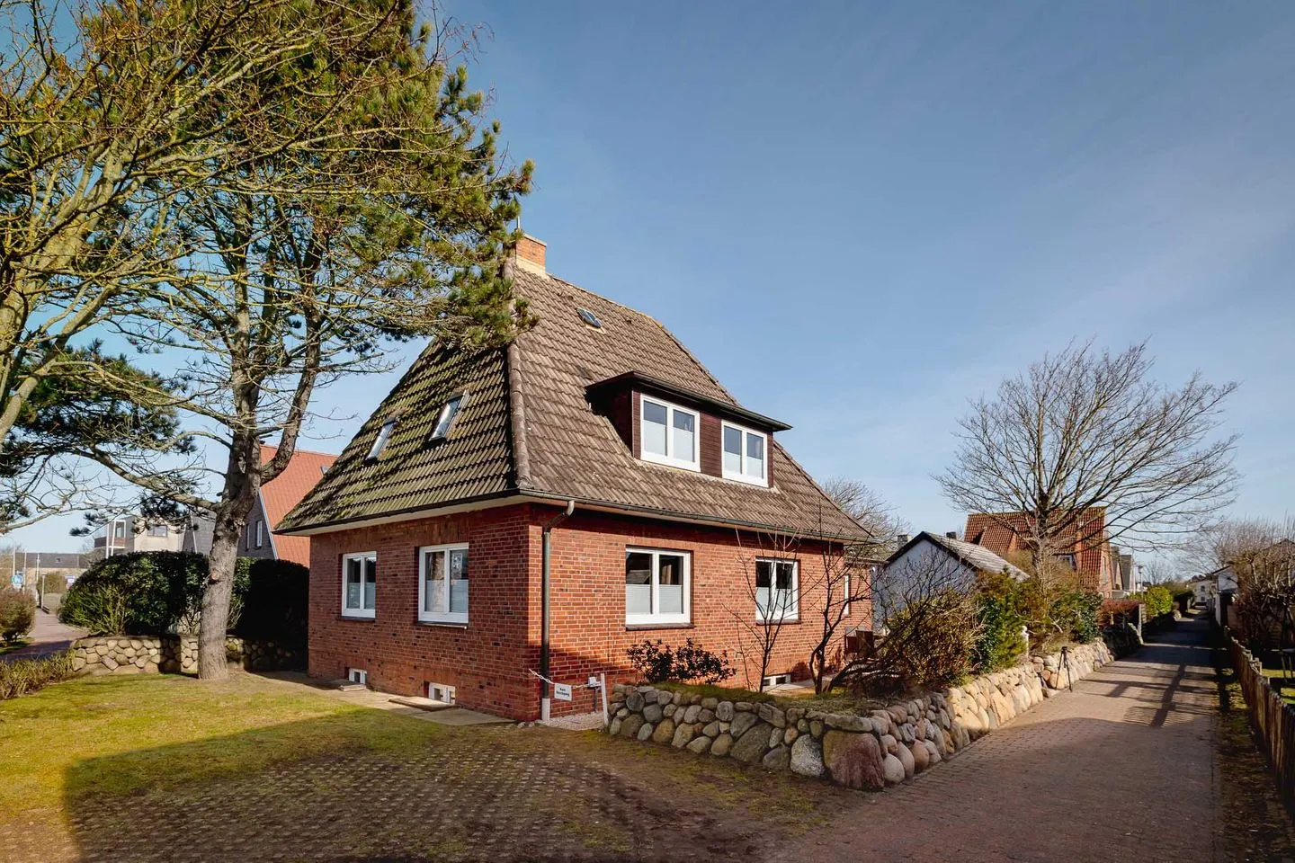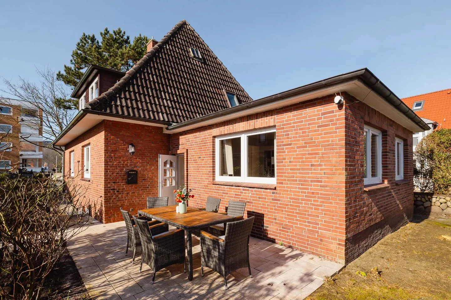 Die Lage ist zentral und zugleich angenehm ausgewogen: Strand, Innenstadt, Restaurants und Einkaufsmöglichkeiten sind fußläufig erreichbar. Gleichzeitig bietet das Haus selbst – insbesondere der rückwärtige Gartenbereich – spürbare Ruhe und Rückzug.